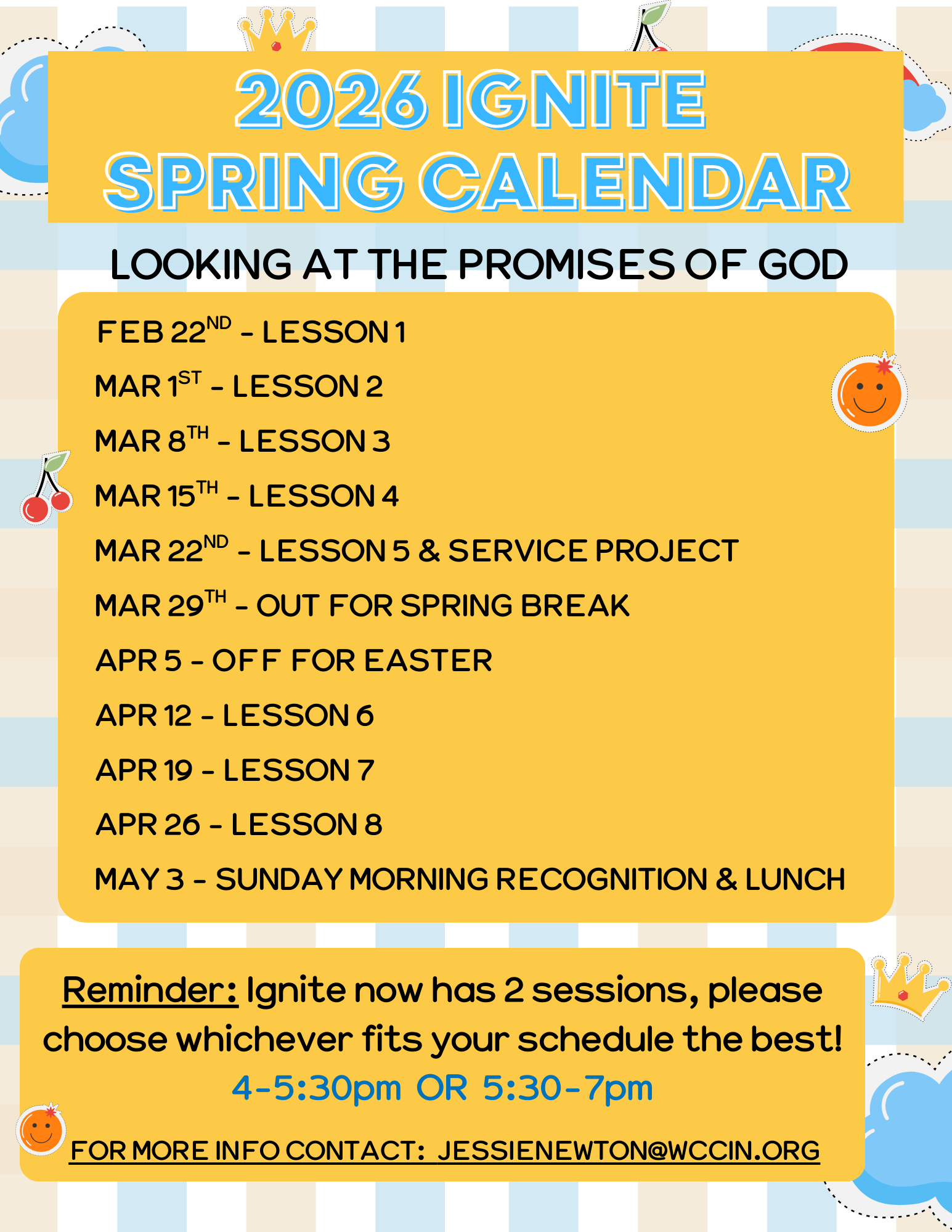 Ignite Sunday School meets in the WCC Children’s Wing during both services, and during the adult Sunday School hour. Sunday Morning Children’s Ministry is discipleship focused, including an age appropriate lesson, prayer, activity, worship and communion.